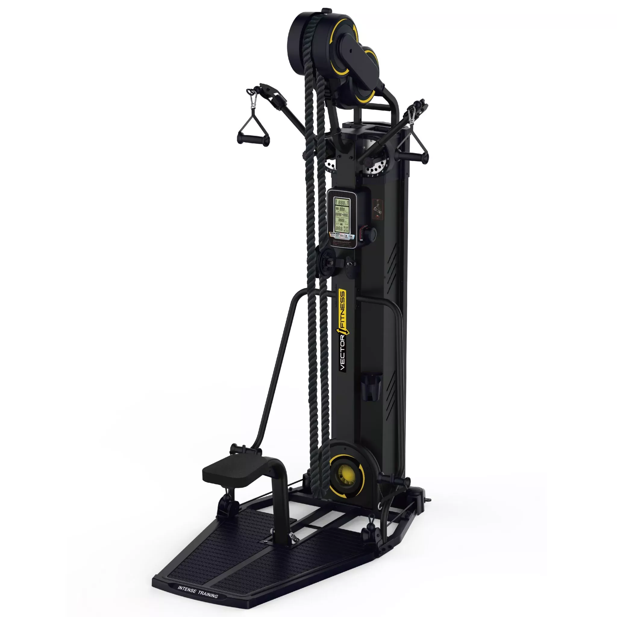 A Vector Fitness 1000U professzionális edzőgép kifejezetten konditermi használatra tervezték és gyártották, de kiváló ár-érték aránya miatt akár otthoni használatra is ideális választás lehet. Az egyaránt 12-12 fokozatban állítható mágnesfékes vagy légellenállásos fékrendszer gyakorlattól függően egyedileg kiválasztható. A funkcionális edzőgép egyedi kialakítású csigarendszere változatos edzésgyakorlatok végzésére nyújt lehetőséget. Csigarendszertől függetlenül használható beépített funkcionális kötél a crossfit gyakorlatokhoz. A Vector Fitness gépekhez raktárról azonnal elérhető alkatrészek folyamatos használatot biztosítanak.