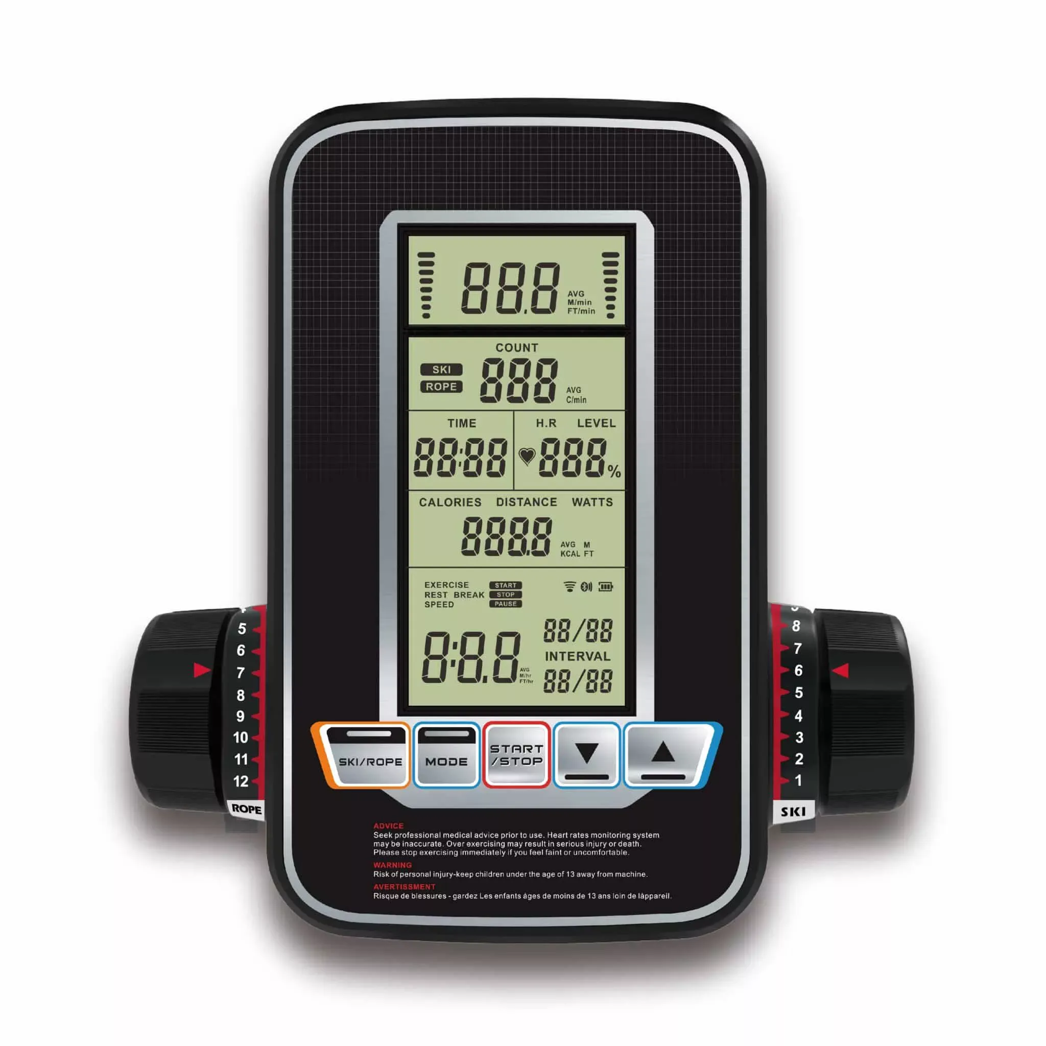 | Edzésmódok | 1 manuláis + 3 célérték (idő, távolság, kalória) + 1 intervallum program |