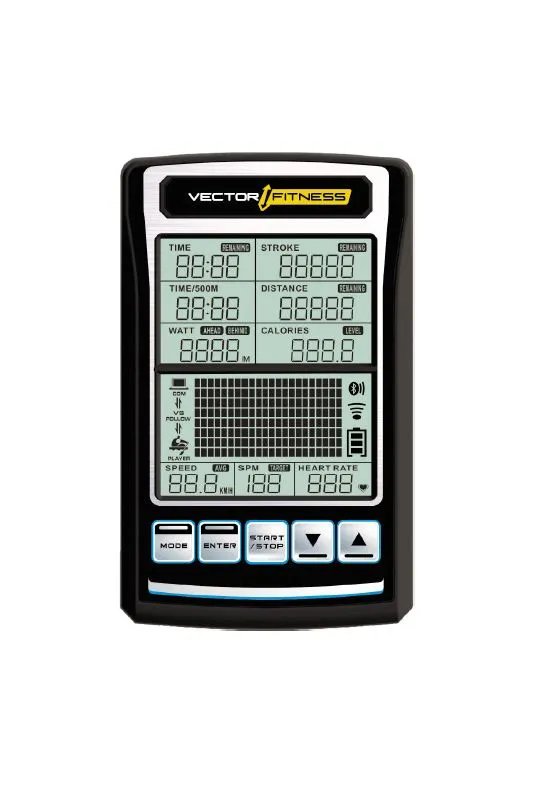 | Kijelzett adatok | Kalória, Pulzus, Sebesség, Távolság, Teljesítmény (Watt), Csapásszám, Edzésidő, Idő/500m, Percenkénti csapásszám |