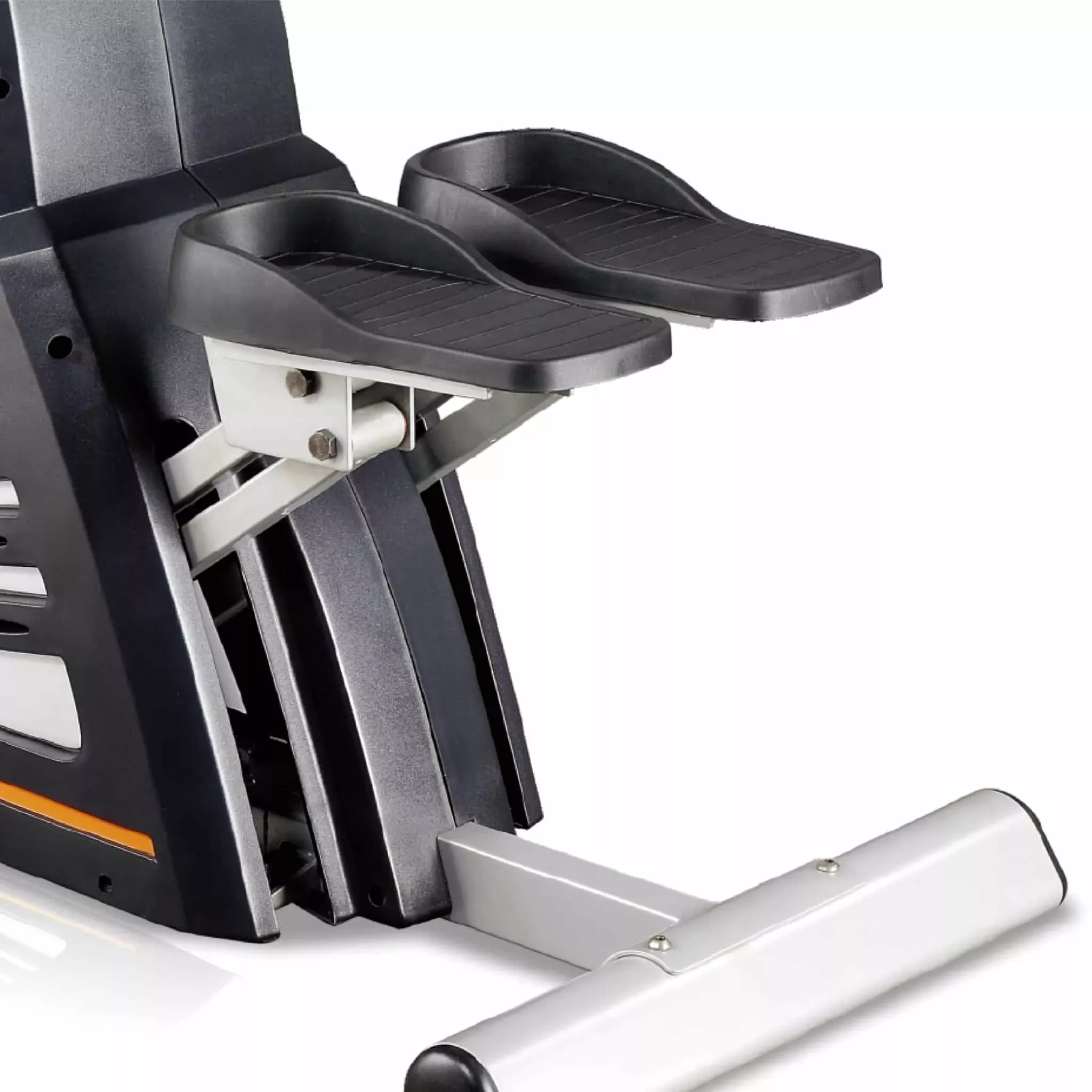 A Vector Fitness 550 professzionális lépcsőgépe a mozgólépcső technológiája alapján készült, ezért használata eltér a hagyományos lépcsőzőgépektől. A Vector Fitness 550 lépcsőgép egy kiváló választás lehet az erőforrások maximalizálásához. Nagy teherbírású kialakítása biztonságos és stabil edzést biztosít a felhasználó részére. A 6 különböző előre beállított és a felhasználó által szerkeszthető edzésprogramok lehetőséget nyújtanak a változatos használatra. A 20 különböző sebességi fokozat a kapaszkodón elhelyezett szabályzó gombokkal is állítható. Maximális teherbírása 180 kg, ami rendkívüli a maga kategóriájában. Lépcsőzetének kialakítása minden felhasználó számára biztosítja a kellemes és eredményes edzést. Pontmátrix LED kijelzővel rendelkezik, amely pontos információt ad az edzésértékekről. Kezelőfelülete egyszerűen navigálható mindenki számára. A kijelzőn leolvasható edzésértékek segítik a könnyebb tájékozódást a használat során.